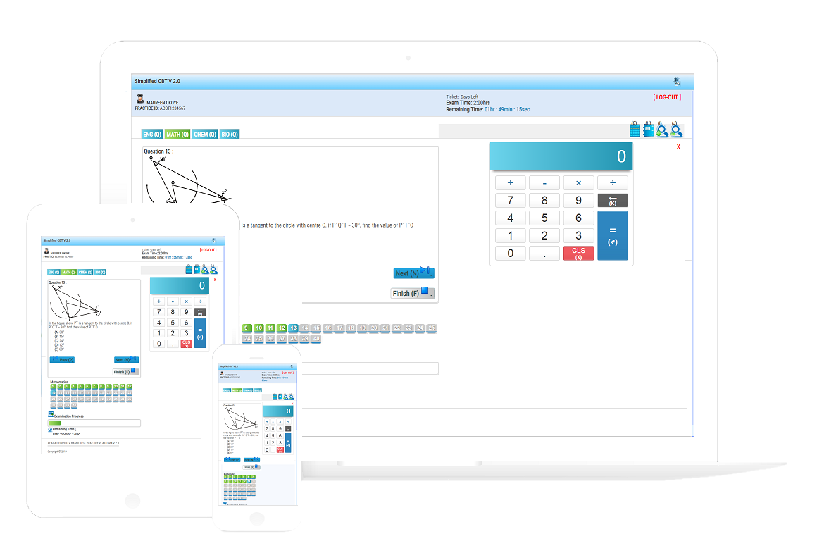 As such, it is not advisable to practice past questions on paper alone. The advantages of getting yourself prepared ahead of time for Examinations, Interviews & other Computer Based Tests (CBT) on Simplified CBT cannot be over-emphasized.
